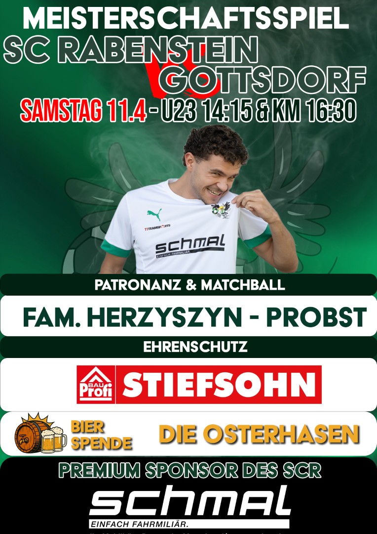 Am Samstag, 11. April 2026, steht für unsere Raben das nächste Heimspiel am Programm. Zu Gast in Rabenstein ist Gottsdorf. ⚽🦅